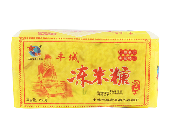 豐城市杜市星球凍米糖廠,是豐城食品生產(chǎn)中的地方傳統(tǒng)名產(chǎn)品。相傳已有兩百多年的生產(chǎn)歷史,以“江南小切,而出名。每年中秋一過,農(nóng)村家家戶戶把糯米飯涼干,炒成爆花米,用米糖拌粘,切成塊塊,待客解茶。這種糕點叫做“炒米糖”、“米花糖塊”。更講究者,用糯米飯做成凍米“干飯”,再用清茶油煎泡“干飯”,使“干飯,變成爆花米,再用飴糖粘結(jié),冷卻后用薄刀切成小塊,前后經(jīng)過半成...